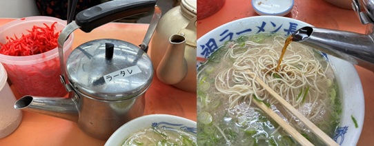 元祖系は薄めの味で出てきて、タレ(醤油)を追加する前提になってます。